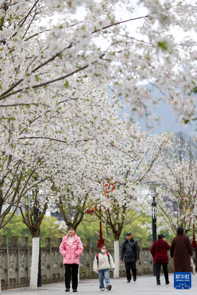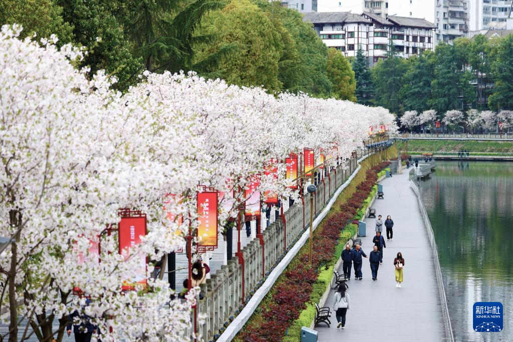 近日,重庆市黔江区武陵水岸樱花长廊的樱花盛开,吸引众多市民前来赏花,感受春天的美丽。近年来,黔江区强化城市园林绿化建设,打造生态与建筑、人文与自然相得益彰的优美环境,提升城区景观颜值和市民生活质量。