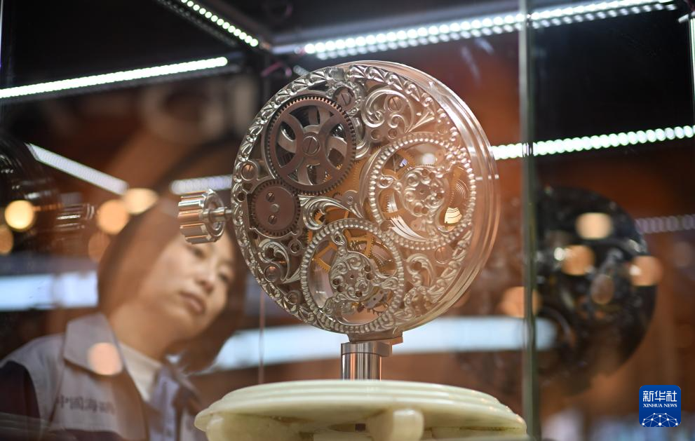 3月24日,天津海鸥表业集团员工在海鸥表博物馆内参观双陀飞轮机芯模型。