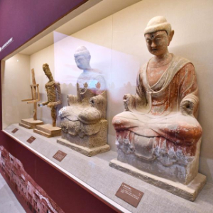 3月29日,观众在参观“如是莫高”敦煌艺术大展中展出的复刻佛像。