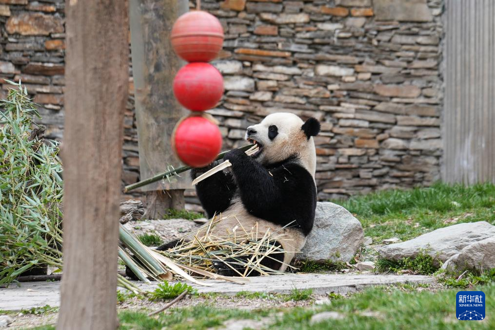 3月27日,大熊猫“糯米”在中国大熊猫保护研究中心卧龙神树坪基地玩耍。