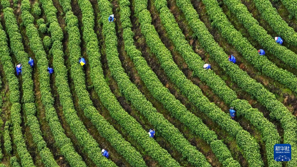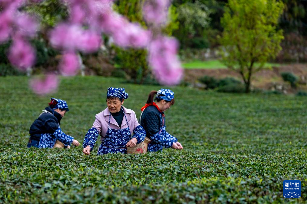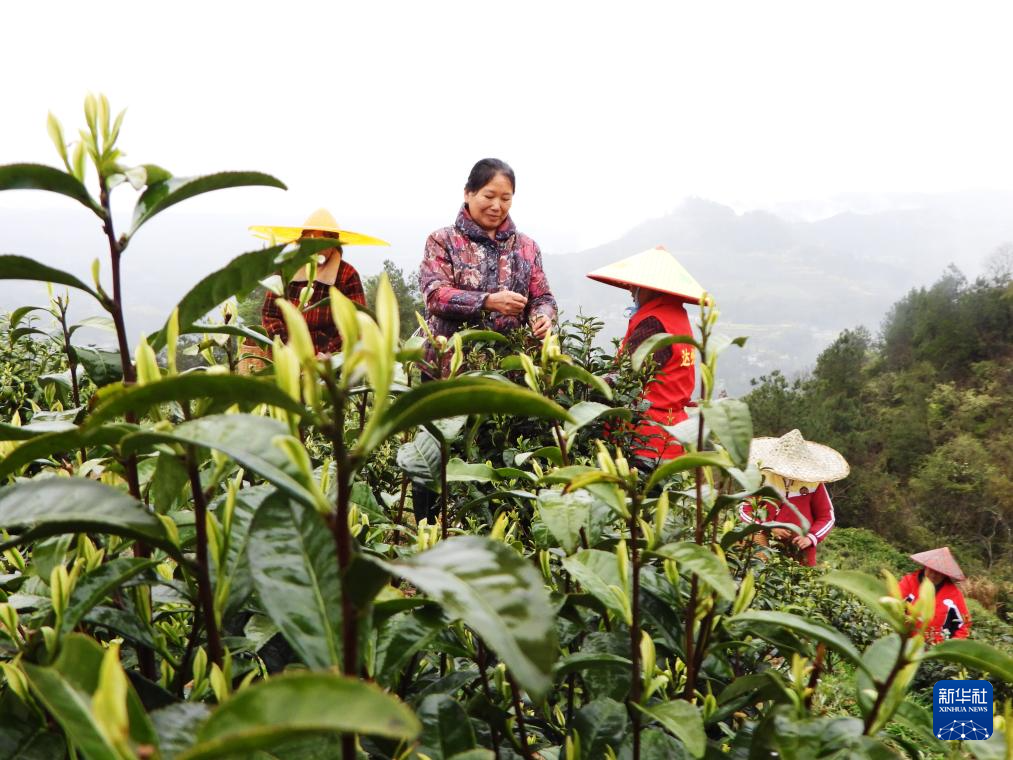 3月29日,茶农在贵州省黔西市中坪镇飞蛾社区黄泥屯茶山采摘春茶。