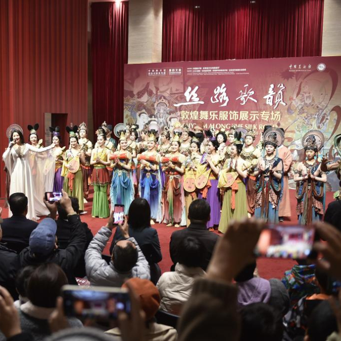 当日,“丝路歌韵:敦煌舞乐服饰展示专场”活动在北京中国美术馆举行。作为“墨韵文脉——甘肃丝路艺术珍品展”的延伸内容,该专场活动由中国美术馆、甘肃省文化和旅游厅联合主办,以歌舞表演与服饰展示相结合的方式,展现敦煌艺术的精神内涵和丝路艺术的独特魅力。