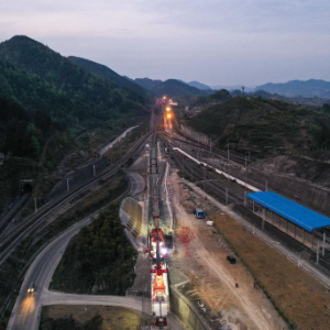 当日,由中铁二十局承建的贵州瓮马铁路南北延伸线预制T梁和轨道铺架工程全面启动。