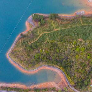 空中俯瞰浙江金华的金华山鹿田村的婺州举岩茶基地(3月31日摄,无人机照片)。