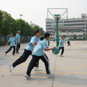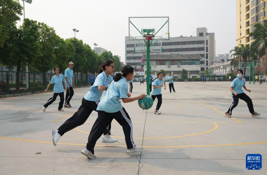 3月31日,瑞丽市第一民族中学学生在球场上打篮球。