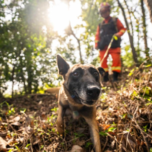 4月1日,在长沙岳麓山穿石坡湖附近,消防救援人员带领搜救犬进行大面积搜索演练。
