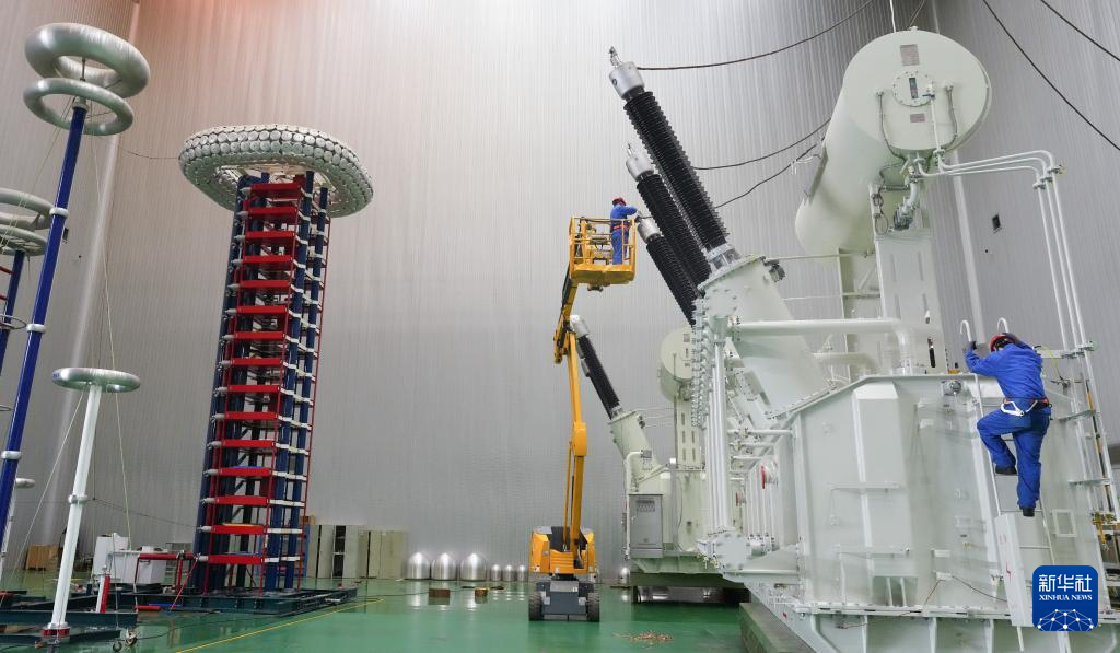 4月1日,在浙江白云浙变电气设备有限公司,工作人员调试应用于新能源电站的变压器。该公司输变电设备出口全球,一季度产值达2.2亿元。