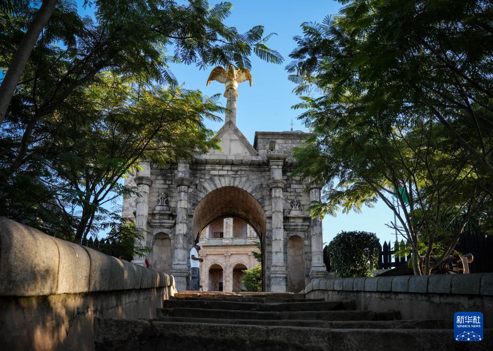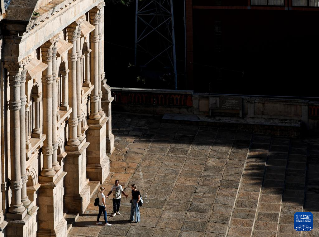 3月26日,在马达加斯加首都塔那那利佛女王宫,游客在合影留念。