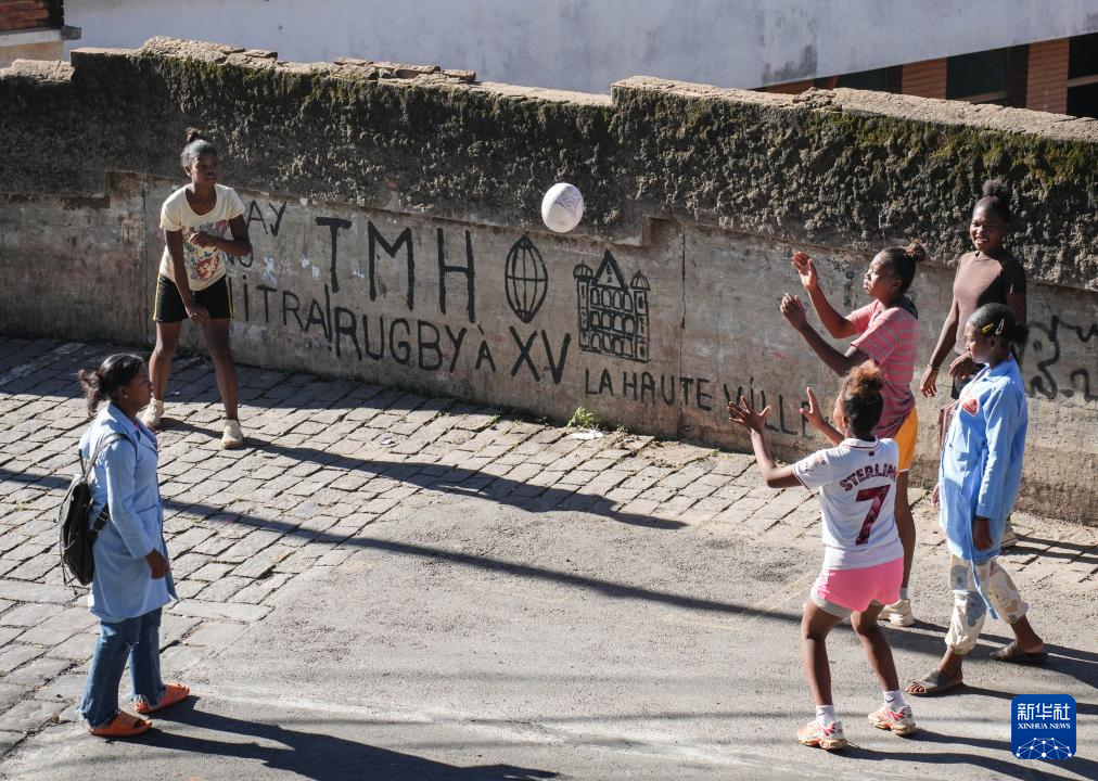 3月26日,在马达加斯加首都塔那那利佛,几名青少年在玩球。