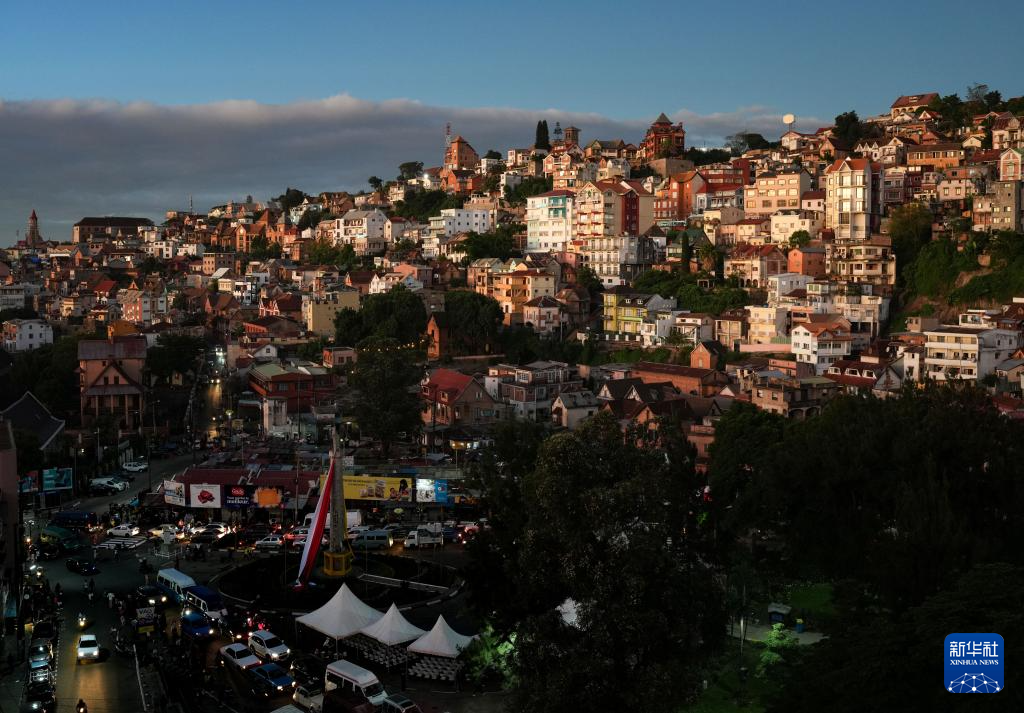 这是3月28日拍摄的马达加斯加首都塔那那利佛黄昏景色。