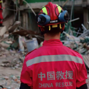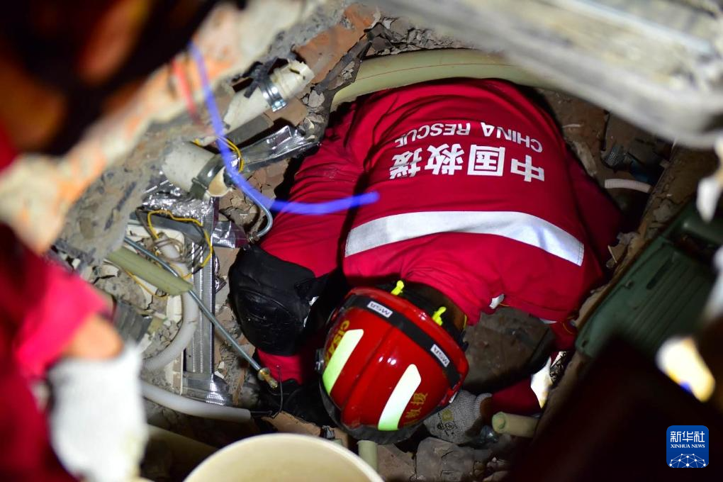 4月1日,中国国际救援队队员在缅甸曼德勒一处酒店开展救援。