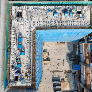 4月1日,工人在哈工大(深圳)重点实验室集群项目的结构静力大厅反力墙上施工(无人机照片)。