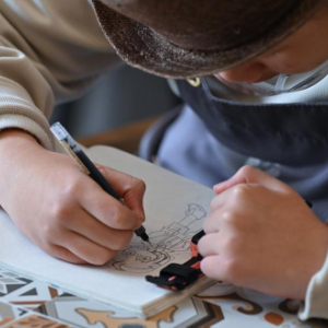 4月1日,在“星点心愿”——支持孤独症青年工作公益店内,一名“星青年”员工在工作间隙作画。