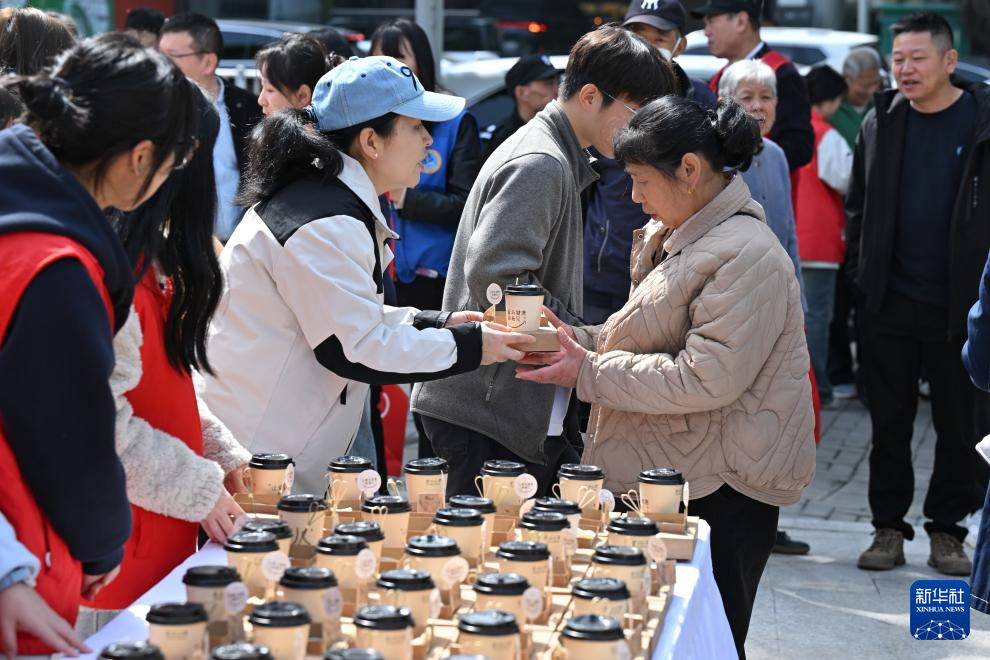 4月2日,志愿者在“星点心愿”——支持孤独症青年工作公益店开店仪式上为市民发放爱心饺。