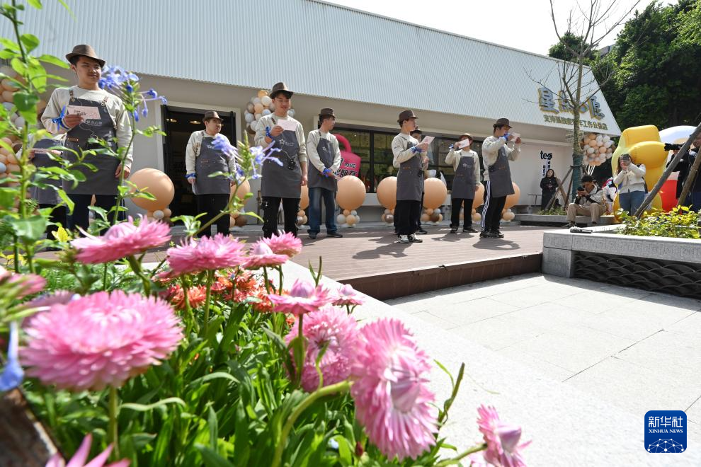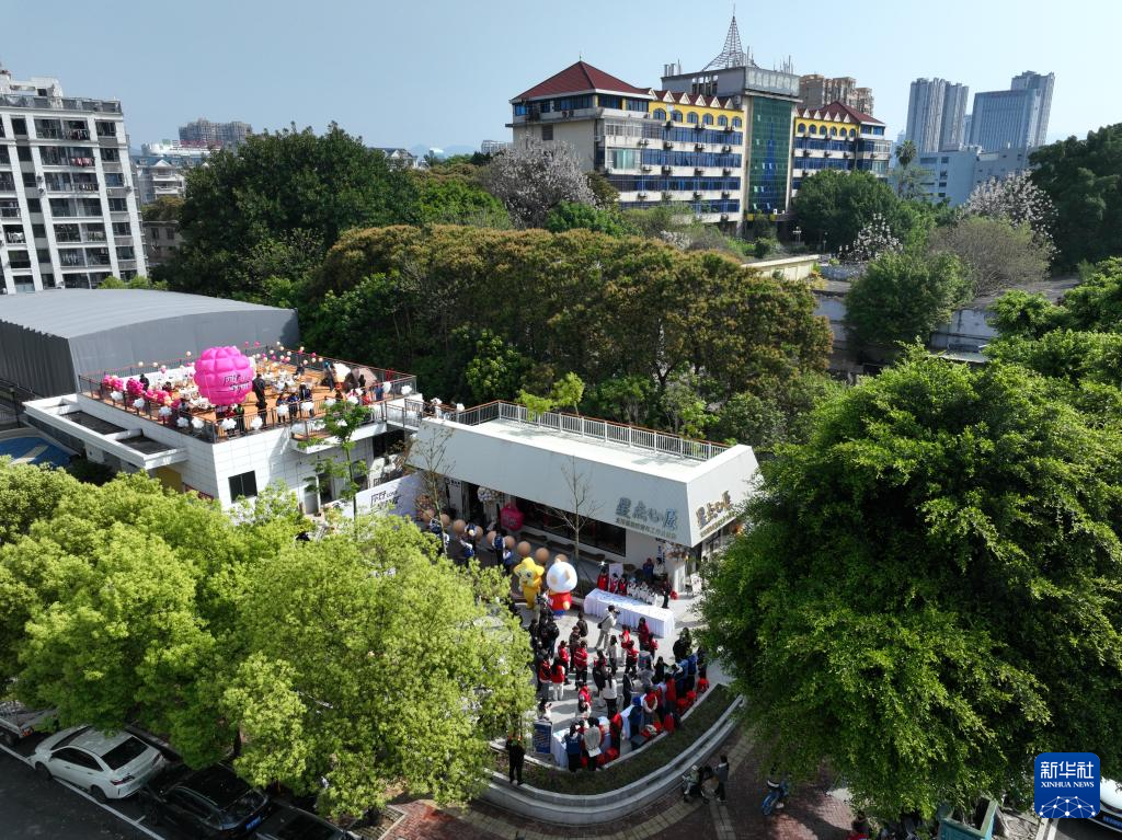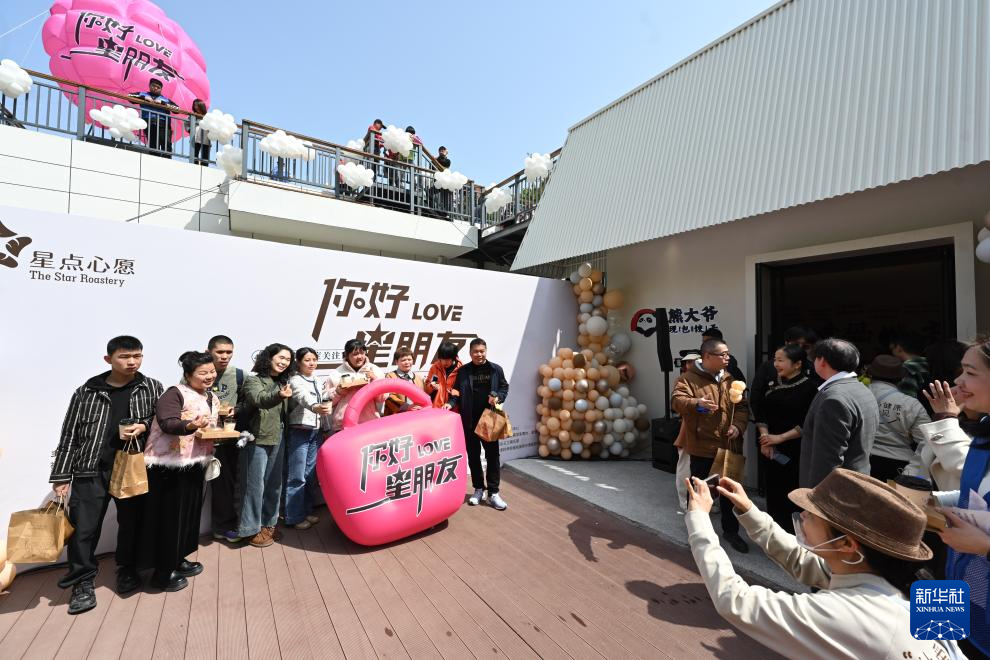 这是4月2日拍摄的“星点心愿”——支持孤独症青年工作公益店开店仪式现场(无人机照片)。