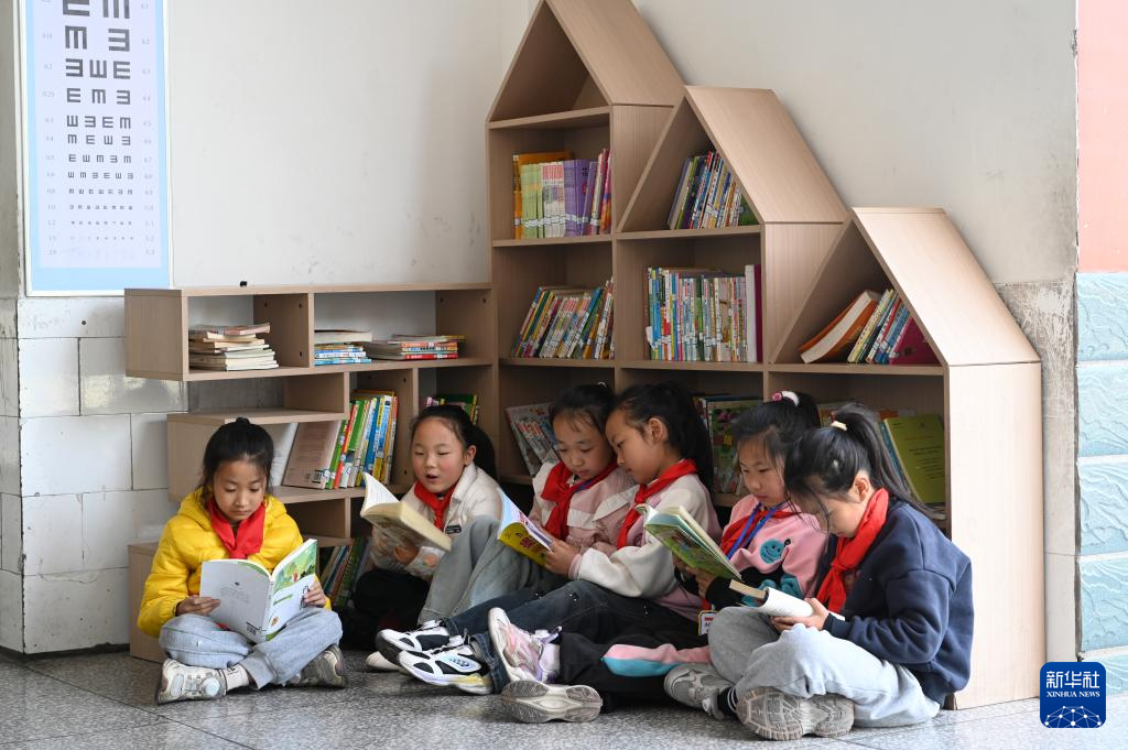 4月2日,河南省洛阳市汝阳县王坪乡中心小学学生在阅读书籍。