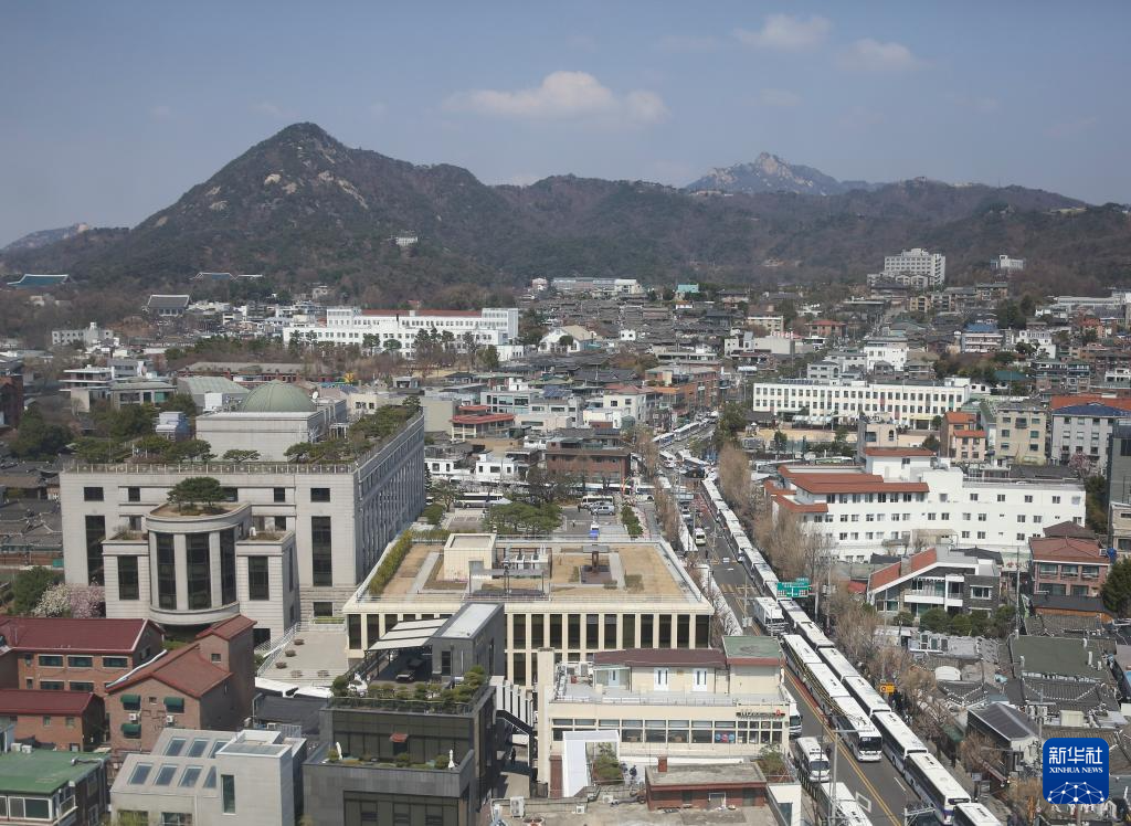 4月3日,在韩国首尔,警察在韩国宪法法院附近进行交通管制。