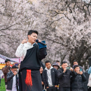 4月3日,歌手在林芝第二十二届桃花旅游文化节巴宜区分会场现场演唱。