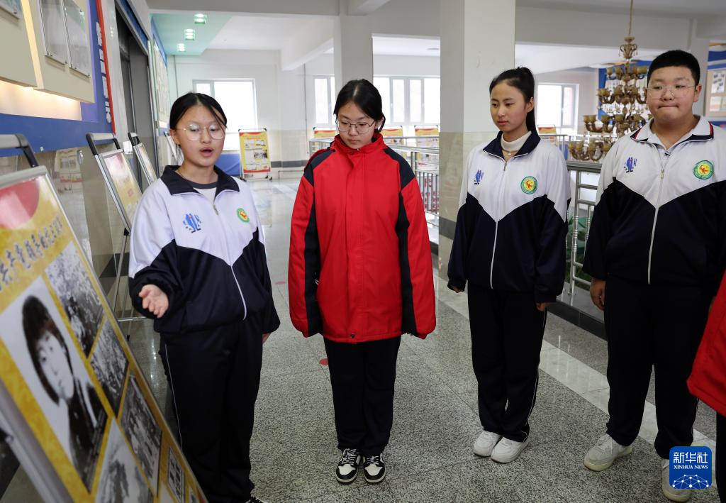 4月3日,抗联中学学生在东北抗联史实陈列馆听讲解员讲述八女投江的故事。