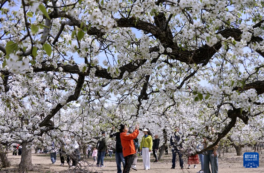4月5日,游客在北京市大兴区庞各庄镇梨花村的古梨园内赏花。