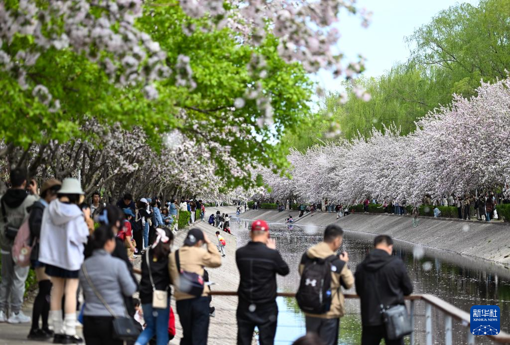 4月5日,市民在位于北京市海淀区的清河之洲公园赏花踏青。