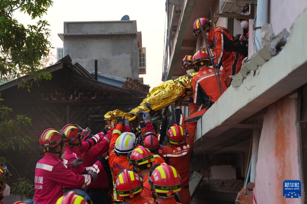 当地时间4月2日17点40分许,中国救援队伍在缅甸曼德勒市金色乡村酒店救援点成功救出一名男性,该男子为酒店员工,已被困超过120小时,被救出时生命体征良好。该名幸存者已转交缅甸当地医疗机构进行后续治疗。这是中国救援队伍救出的第9名幸存者。
