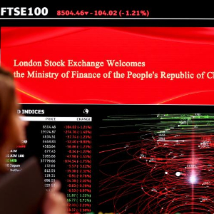 4月3日,工作人员经过英国伦敦证券交易所的电子显示屏。