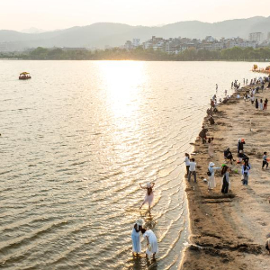 清明假期,云南省红河州弥勒市天气晴好。市民和游客来到湖泉生态园、东风韵小镇、红河水乡小镇等地踏青赏景,享受春光。