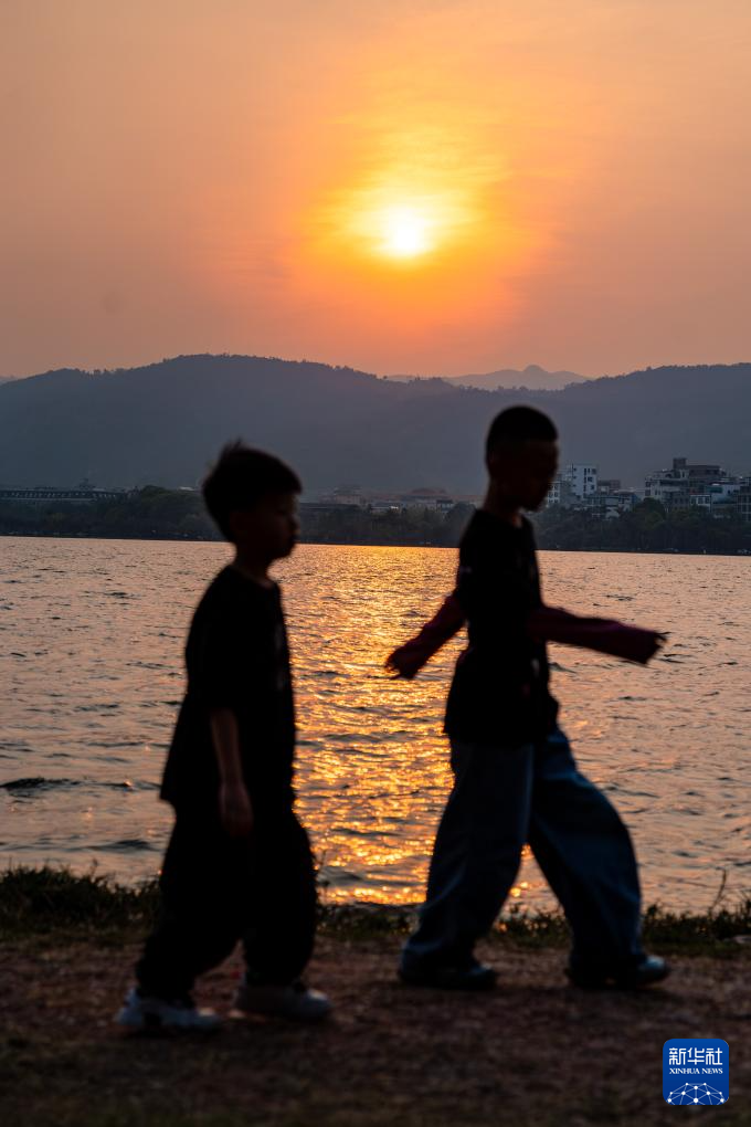 两个小朋友在云南省红河州弥勒市湖泉生态园游玩(4月4日摄)。