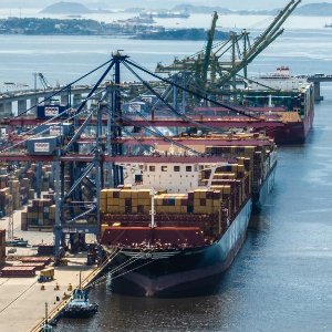 4月3日,集装箱货船停靠在巴西里约热内卢的一处港口。