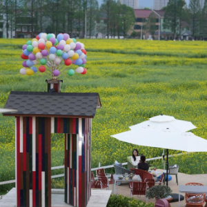 4月7日,游客在桐庐县梅蓉村乡村会客厅咖啡馆内阅读。