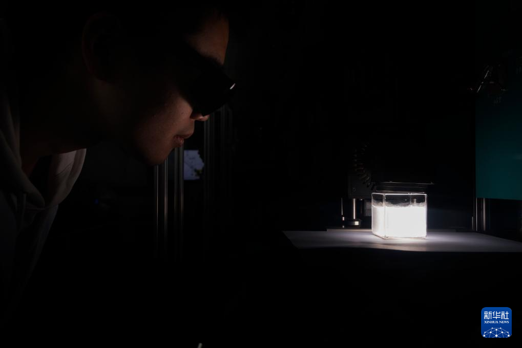 这是在中国科学院金属研究所实验室沈阳材料科学国家研究中心拍摄的光催化分解水制氢实验(4月3日摄)。