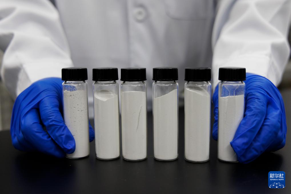 4月3日,在中国科学院金属研究所沈阳材料科学国家研究中心实验室,科研人员展示改造后的半导体光催化材料二氧化钛。