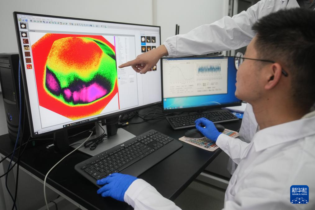 4月7日,在中国科学院金属研究所沈阳材料科学国家研究中心实验室,科研人员在检测改造后的半导体光催化材料二氧化钛样品。