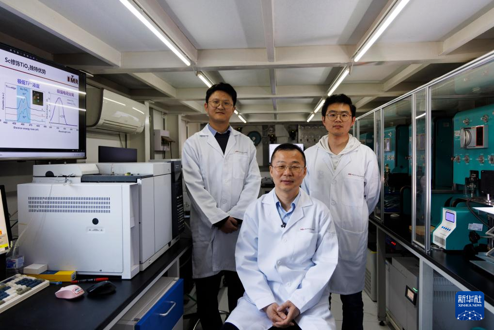 4月3日,在中国科学院金属研究所沈阳材料科学国家研究中心实验室,研究员刘岗(中)、副研究员康宇阳(左)、博士研究生秦飞合影。
