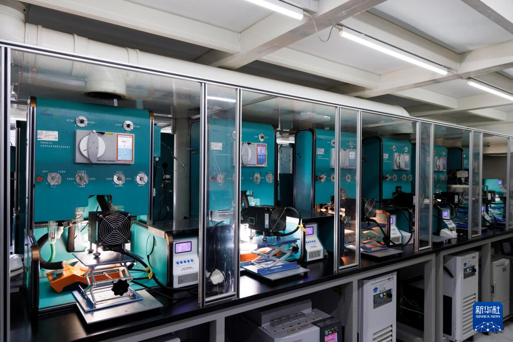 4月3日,在中国科学院金属研究所沈阳材料科学国家研究中心实验室,科研人员在观察光催化分解水制氢的实验进展。