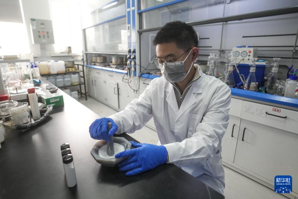 4月7日,在中国科学院金属研究所沈阳材料科学国家研究中心实验室,科研人员在研磨改造后的半导体光催化材料二氧化钛。