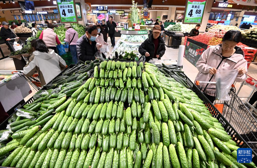 4月10日,消费者在江苏省南京市一家超市选购蔬菜。