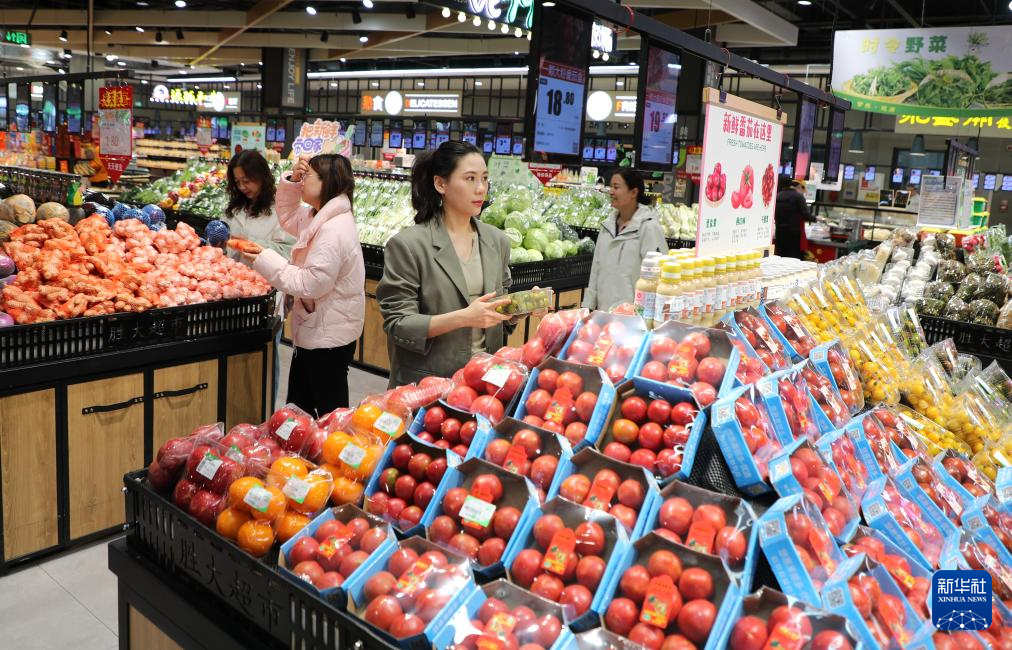 4月10日,消费者在黑龙江省齐齐哈尔市一家超市选购商品。