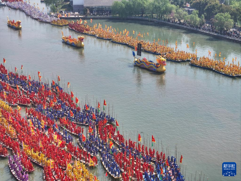 当日,2025泰州姜堰溱潼会船在江苏省泰州市姜堰区溱湖国家湿地公园开幕,五百多条各式船只和上万名会船选手飞篙走桨、弄潮击浪,演绎历久弥新的民俗画卷。