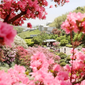 4月13日,游客在浙江省湖州市德清县下渚湖奇幻谷杜鹃花海中漫步游玩。
