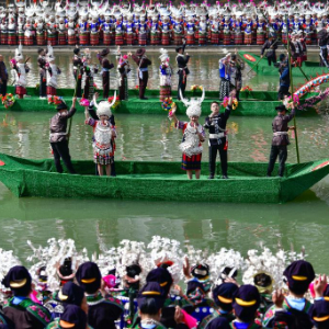 当日,贵州台江2025年苗族姊妹节苗歌对唱活动在台江县翁你河畔举行。来自台江县的万余名苗族群众,身着节日盛装齐聚翁你河畔,以传统对唱的方式,向游客展现苗族飞歌、情歌,欢庆姊妹节。