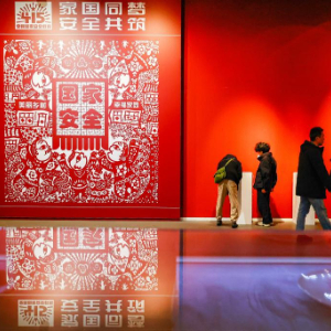 4月13日,市民在天津美术馆参观天津市全民国家安全教育10周年优秀非遗作品展。