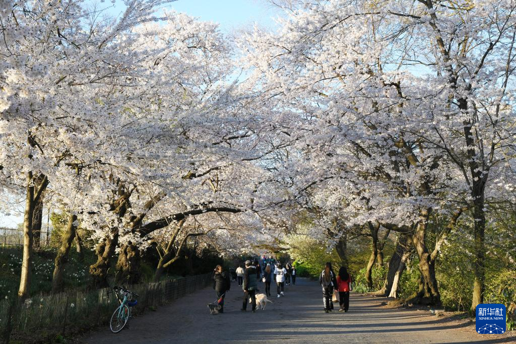 4月13日,美国纽约中央公园樱花盛开。