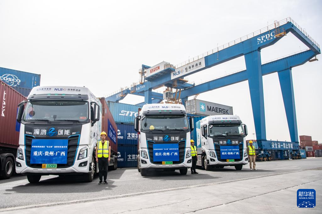 4月14日,氢能重卡在陆海新通道重庆无水港顺利发车。