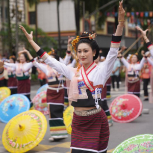 当日,云南省西双版纳傣族自治州在景洪市举办民族民间传统文化大游演,庆祝傣历新年的到来。