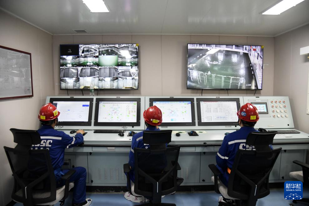 4月17日,“国信1号2-1”船员在养殖监控室值守。