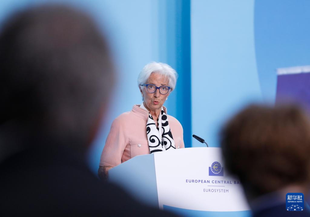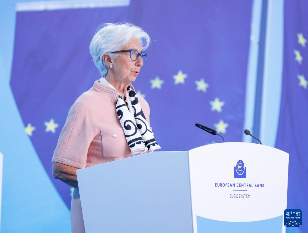 4月17日,欧洲中央银行行长拉加德在德国法兰克福欧洲央行总部举行的新闻发布会上讲话。
