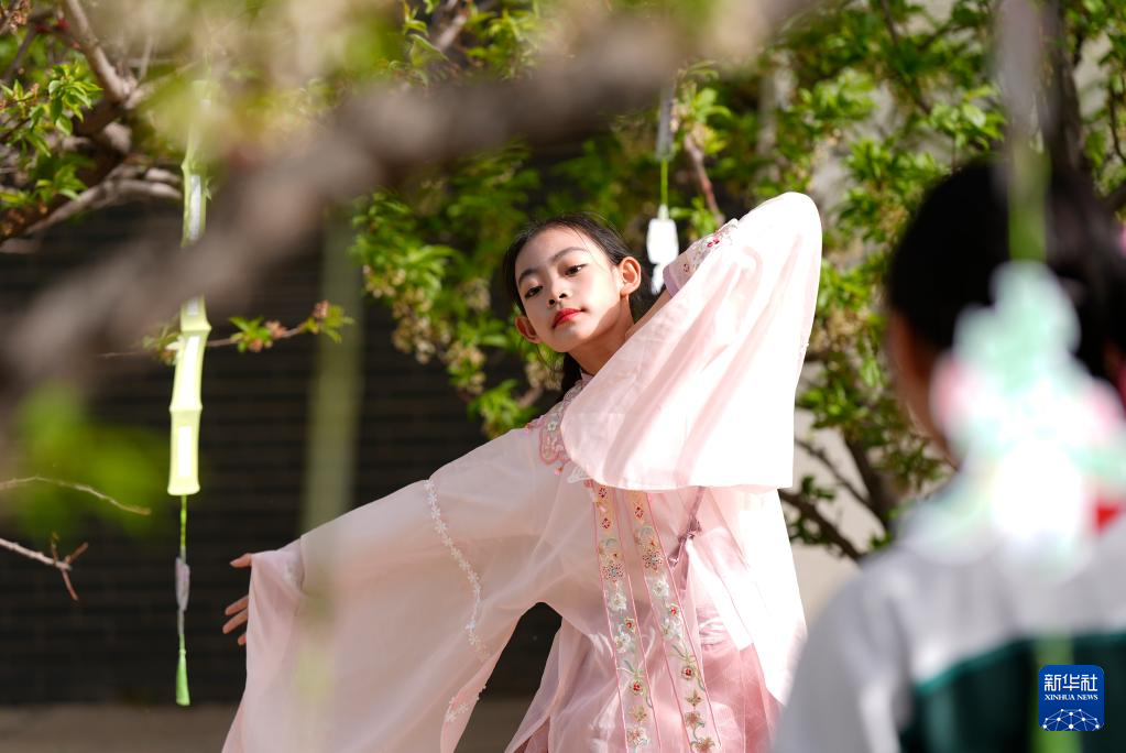 4月17日,兴庆区实验第二小学学生在活动上表演古典舞蹈。