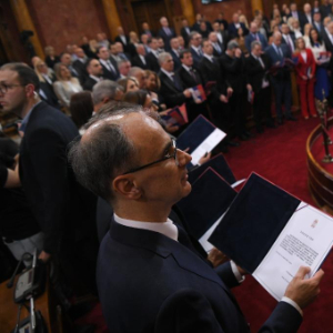 4月16日,塞尔维亚新内阁成员在贝尔格莱德的国民议会宣誓就职。